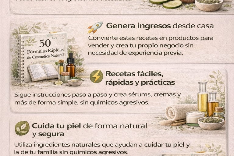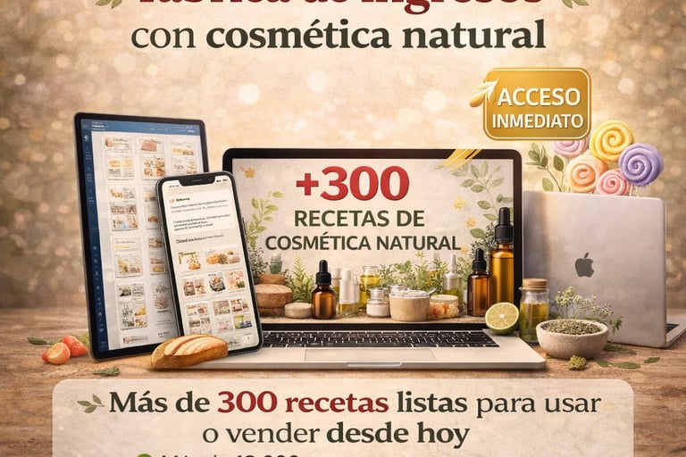 Imagina tener en tus manos un recetario con 300 fórmulas de cosmética natural que pueden transformar tu piel y, al mismo tiempo, convertirse en la base de un emprendimiento propio.